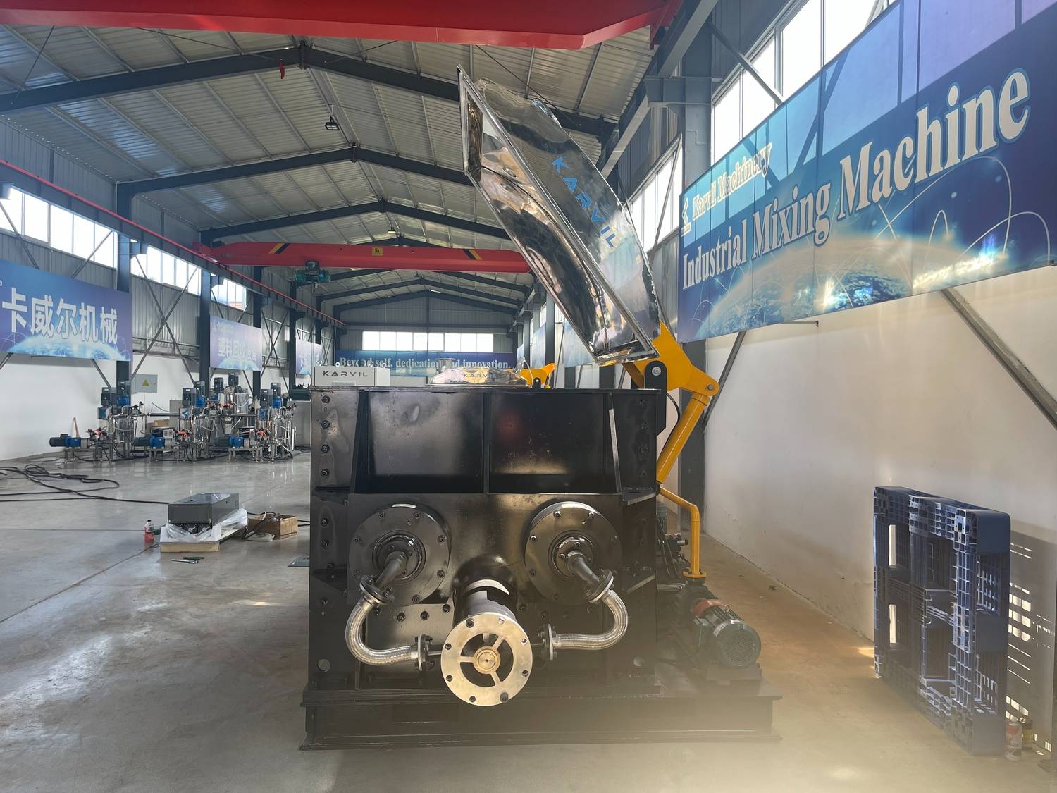 Questo mixer Sigma da 2000 litri è stato nuovamente scelto da un'azienda di materiali impermeabili statunitensi , segnando il loro secondo acquisto dello stesso modello . Il loro ordine ripetuto riflette la fiducia dei clienti globali di fiducia e fiducia nella qualità e nel servizio di Karvil Machinery.